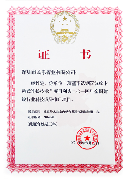“薄壁不銹鋼管波紋卡粘式連接技術(shù)”科技成果推廣項(xiàng)目